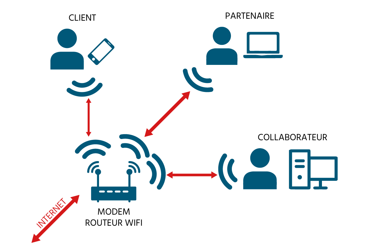 Le WiFi utilise plusieurs protocoles de communications sans fil. Il permet d’interconnecter des équipements informatiques (ordinateur, tablette, téléphone …) au sein d’un même réseau informatique afin qu’ils puissent transmettre des données et se connecter à internet. Les principaux avantages de cette technologie sont la facilité d’utilisation une fois le réseau installé, la mobilité, ainsi que la sécurité du réseau et des transferts de données. Ces arguments font du WiFi un outil indispensable pour les professionnels.